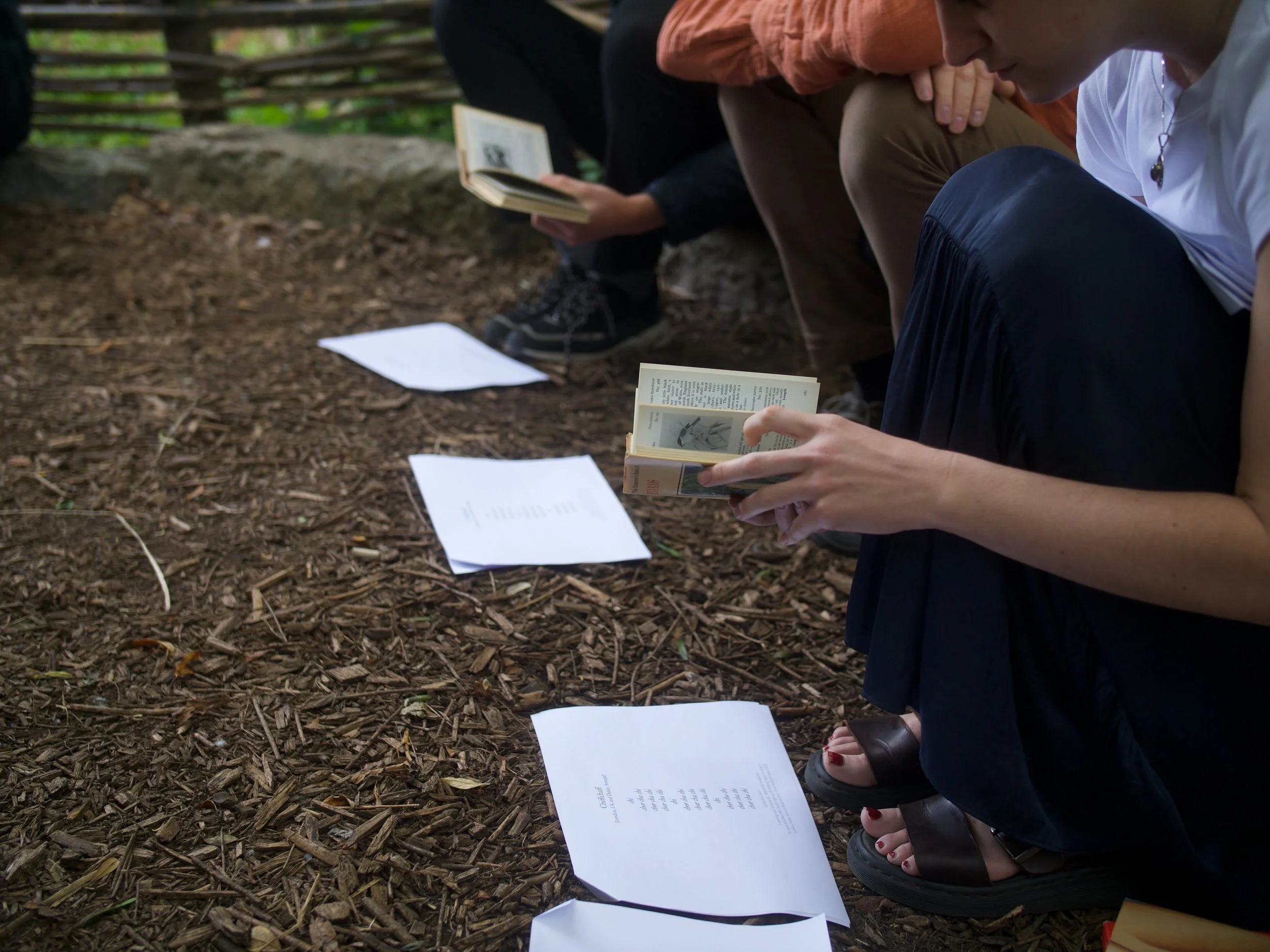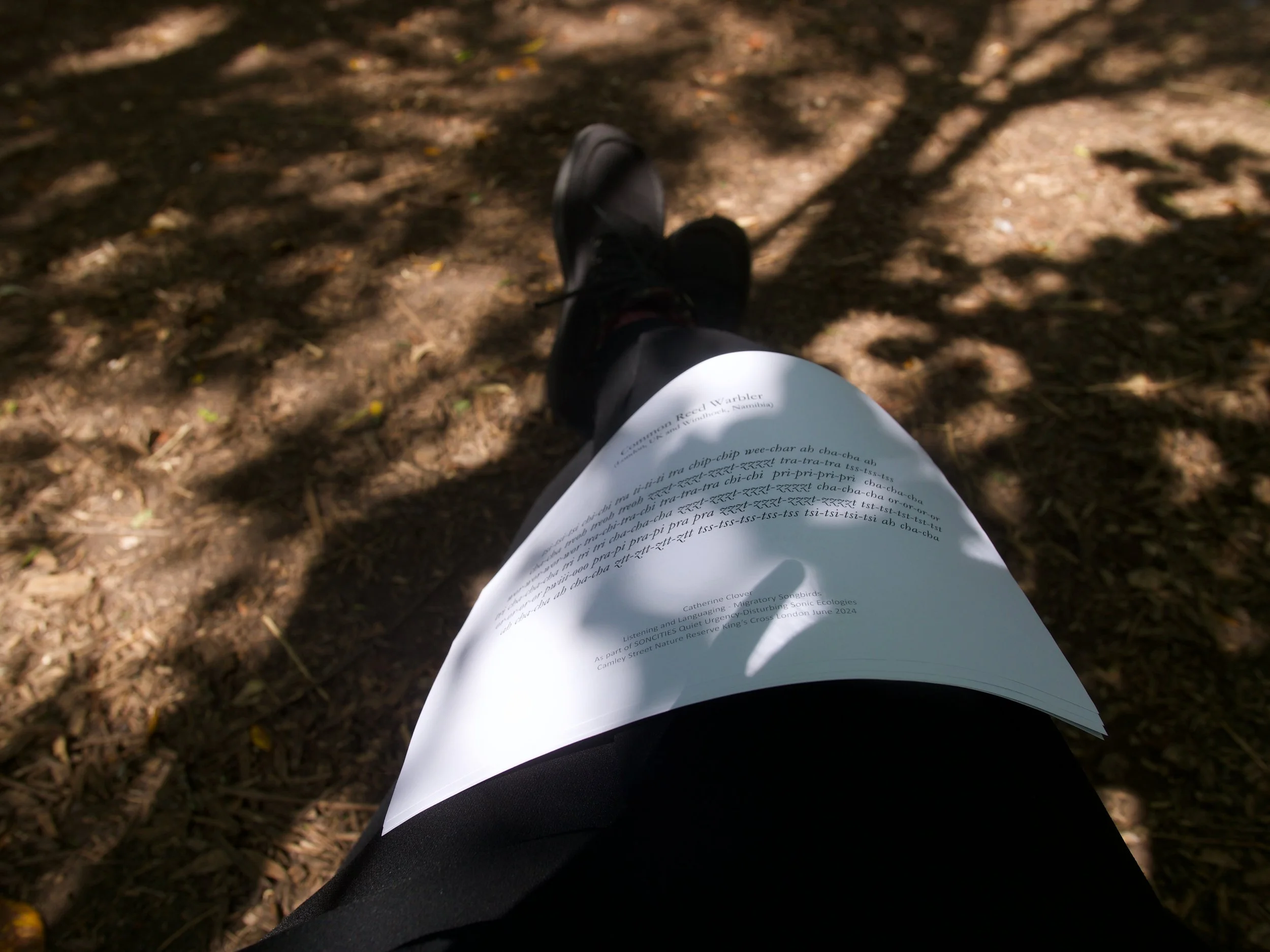 Sound and location are deeply intertwined for birds as for all species including ourselves. Responding to this observation, Clover led an informal, inclusive, participatory voicing action in the Camley Street Nature Reserve using a score based on the voices of the local birds. Starting with an introduction to some of the migratory songbirds that can be found in the reserve, drawing attention to the ways their calls are shaped through distantly-connected localities in both Europe and Africa, she led the group in an improvised voicing using texts transcribed from these calls.